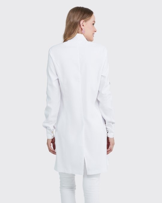 La bata femenina Juicy está llena de estilo y sofisticación. Con un corte super slim y estructurado, realza la silueta, proporcionando un ajuste elegante y cómodo gracias a su tela con 97% poliéster y 3% elastano, que garantiza libertad de movimiento durante todo el día.